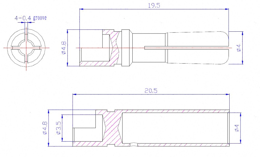 New design of the male head shape increases the contact surface area than ordinary 4.0mm banana plug.