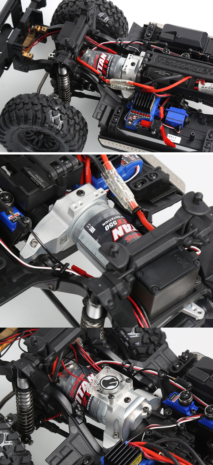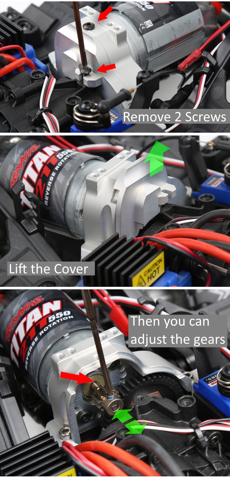 Upgrade Traxxass #8290. – Never loose like th original stock mount. – Gear cover can be removed to adjust gears. – Metal body to assist motor heat sink. – 4 Top screw holes are reserved for user DIY. Note: This product is only suitable for TRX4 original gear box. |