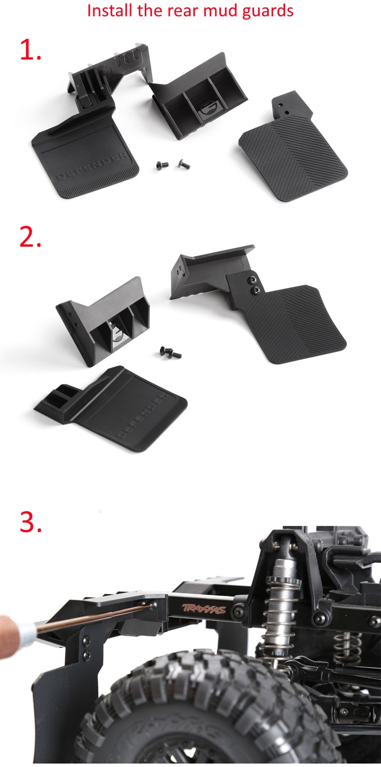 Mount onto the chassis – Adaptable to different bodies For Traxxas DEFENDER, TACTICAL UNIT or Bronco Stock Chassis. You need DIY if installing on other D90/D110. |