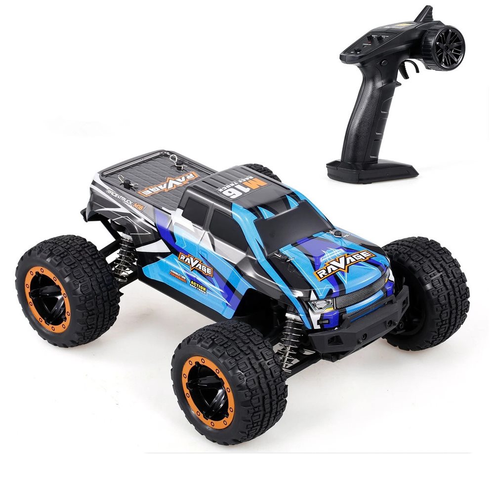 The HBX Ravage is powered by a 390 brushed motor and splashproof brushed ESC/receiver. A metal heatsink helps to keep the motor cool and T-style connectors ensure reliable power delivery from the rechargeable Lipo battery pack. The HBX Ravage includes two rechargeable 7.4V Lipo 1000MAH battery packs. Only one battery pack is used at a time, so one can be charged while the other is being used in the vehicle. The included 2.4GHz pistol grip radio offers reliable control and comfort. The radio includes steering and throttle adjustments, as well as servo reversing. This efficient radio only requires two standard AA batteries, which can be purchased separately.