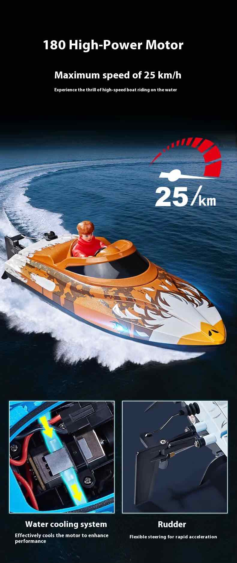 30cm Self-Righting RC Boat Brushed RTR, Choose Color