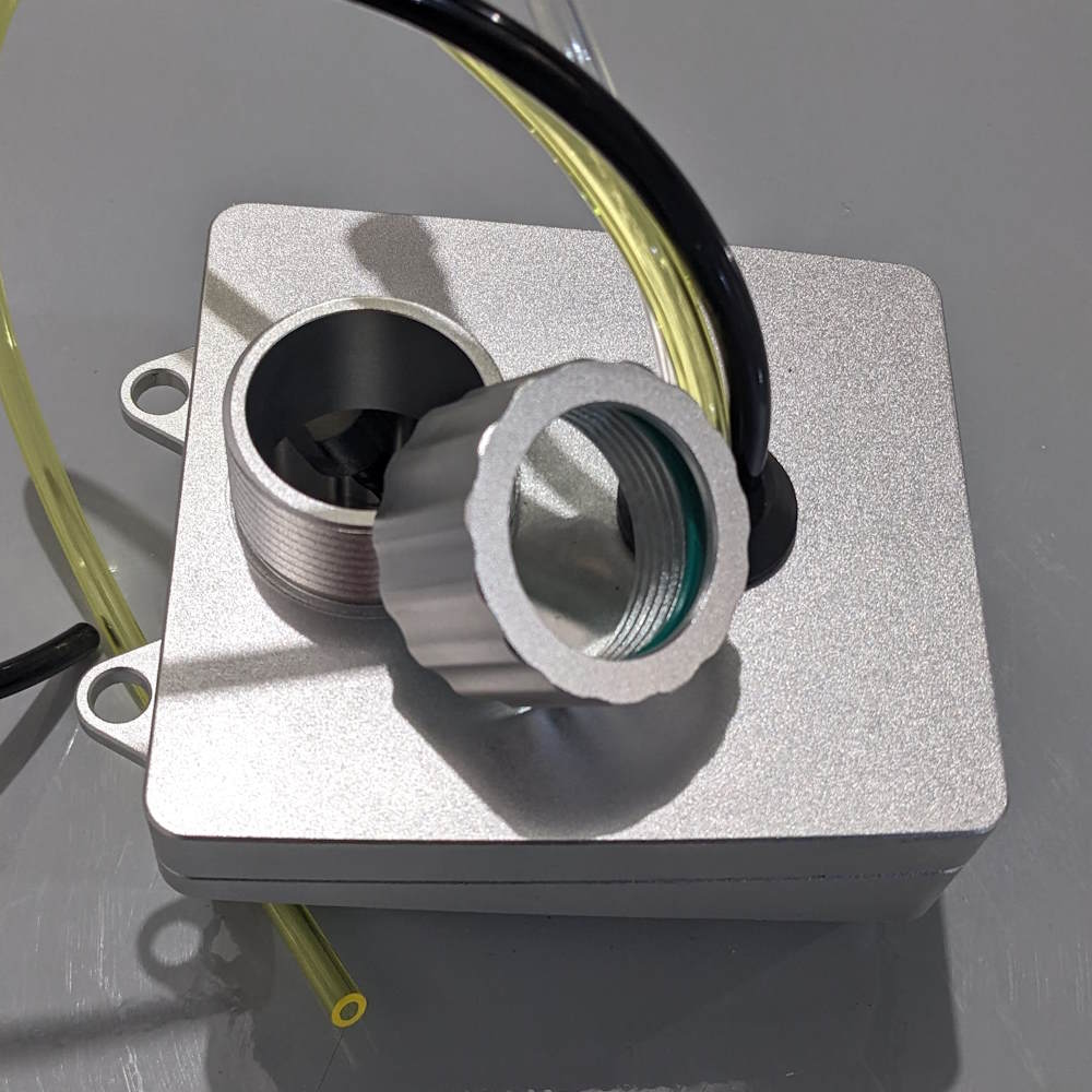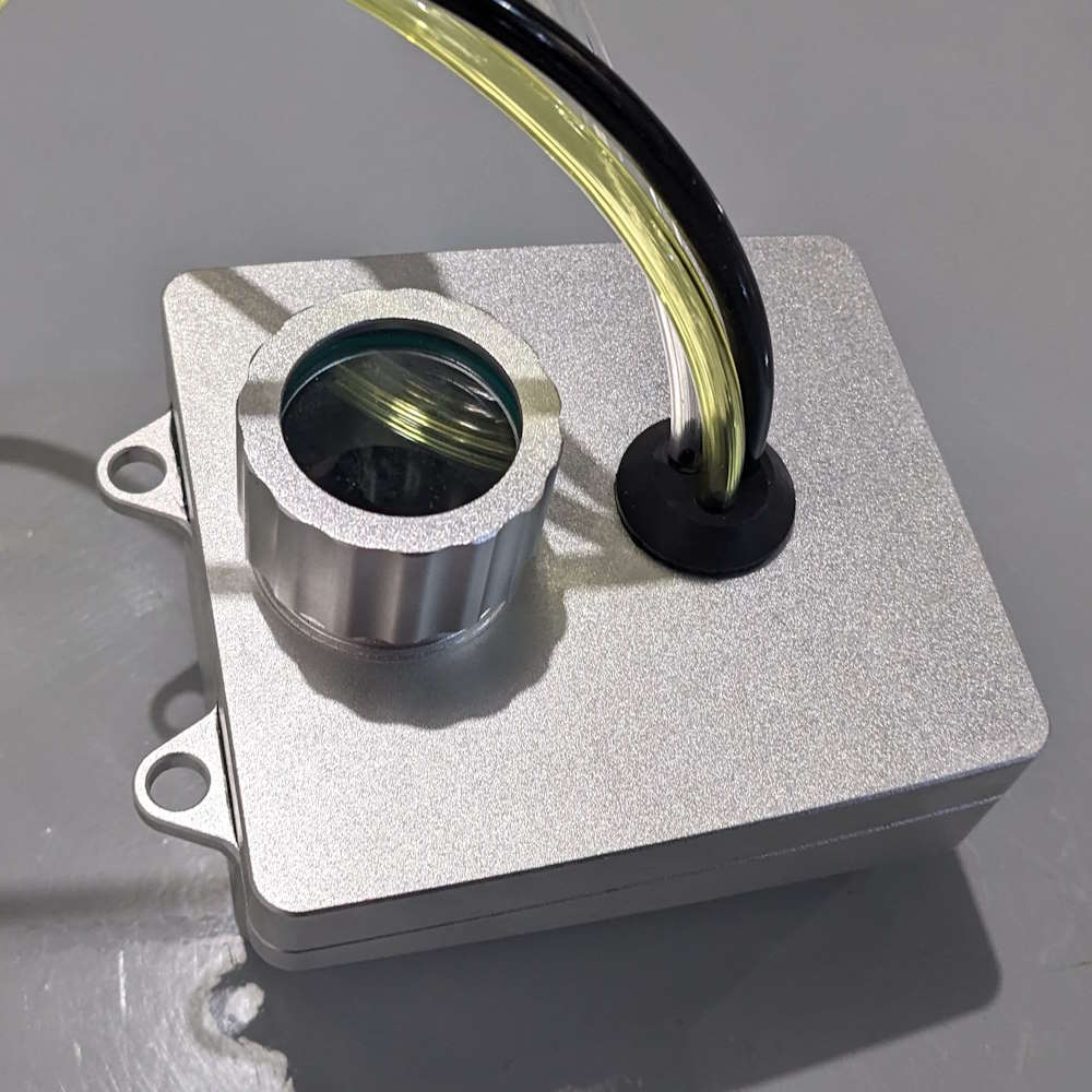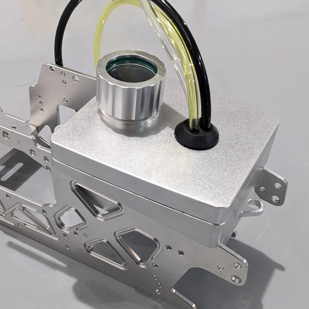 Transparent fuel tank cap for easily checking fuel level.